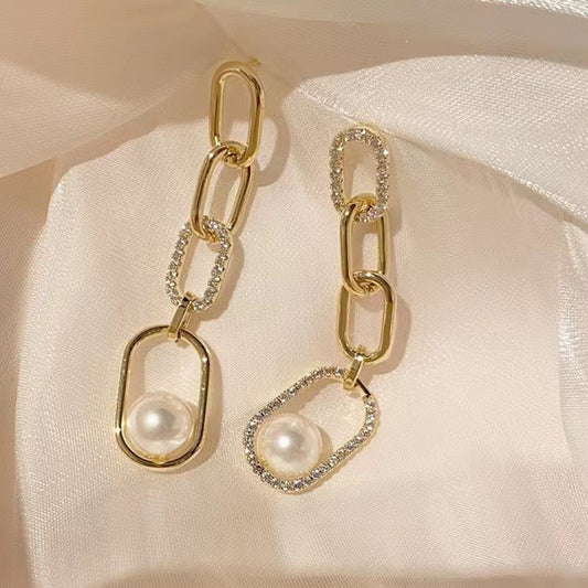 Women Linked Chain Pearl Dangel Earring Setting