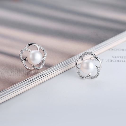 Wholesale S925 Sterling Silver Flower Shape Stud Earring Pearl Jewelry Mounting
