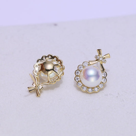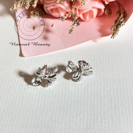 Luxury Cubic Zirconia Sterling Silver Bow Tie Pearl Earring Setting