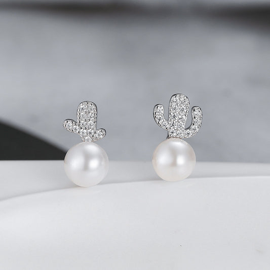 Lovely Cubic Zirconia Cactus Earring Setting-S925 Sterling Silver