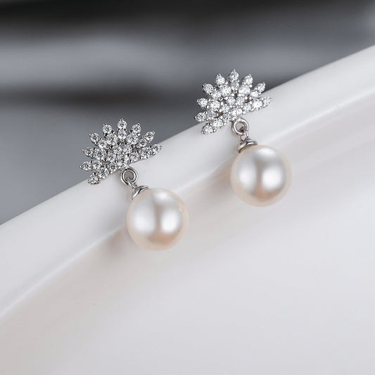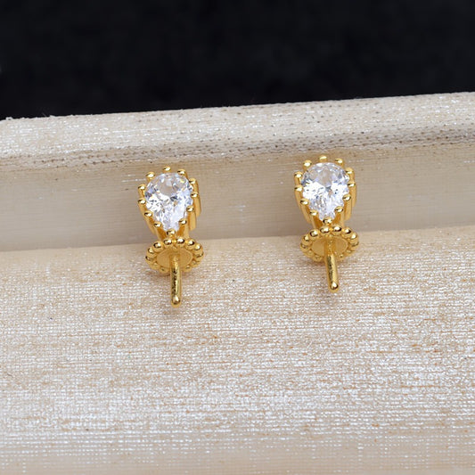 Real Silver Drop CZ Pearl Earring Setting-Feliz Pearl