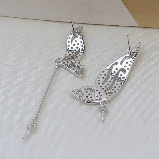 S925 Silver Rhodium Plated Butterfly Pearl Earring Mounting