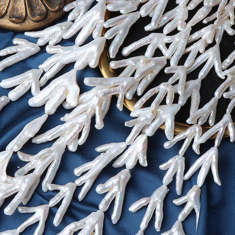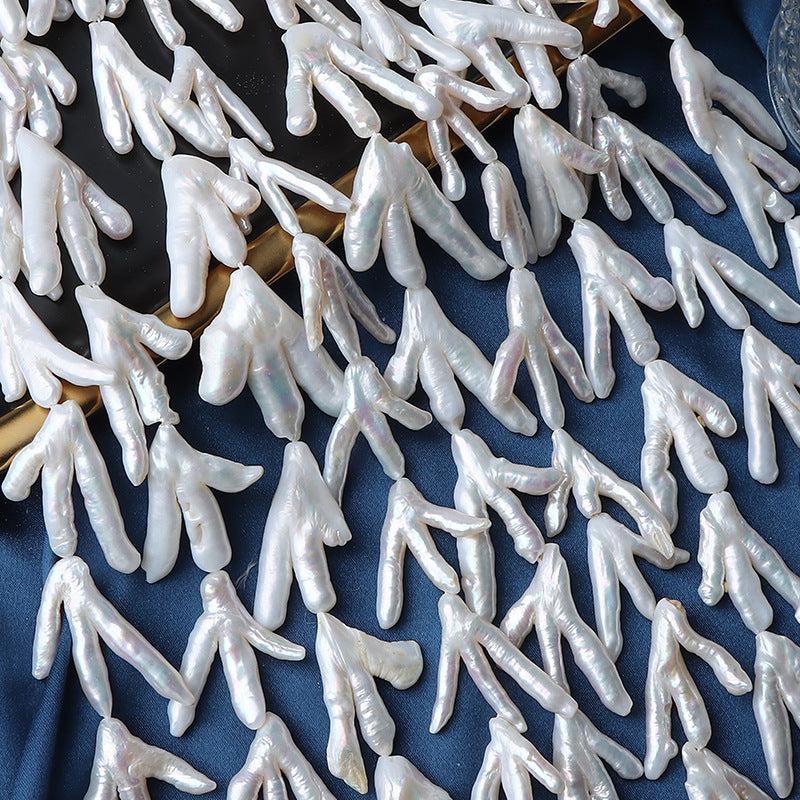 These freshwater irregular shape baroque pearl strands are with nice luster, the surface is smooth. The unique claw shape pearls are with unique beauty.